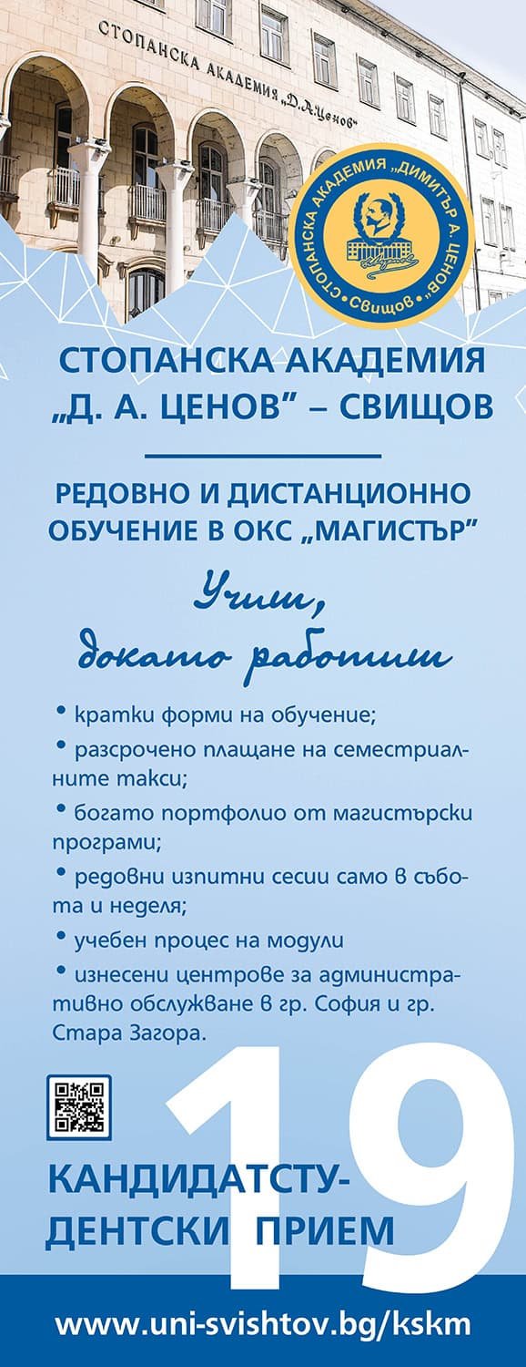 Admission Campaign for D. A. Tsenov Academy of Economics – Svishtov